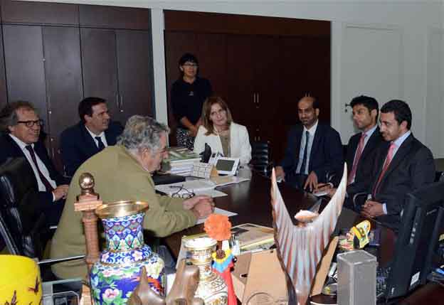 Montevideo: President Jose Mujica of the Republic of Uruguay has received H.H. Sheikh Abdullah bin Zayed Al Nahyan, Foreign Minister, in the capital, Montevideo. During the meeting, Sheikh Abdullah conveyed the greetings of President His Highness Sheikh Khalifa bin Zayed Al Nahyan to the President of Uruguay, and his best wishes for further progress and prosperity for the people of Uruguay. Sheikh Abdullah also highlighted the importance of bilateral relations between the two countries and ways of boosting them in all fields. For his part, President Jose asked the UAE Foreign Minister to pass his greetings to His Highness the President, stressing his country's keenness to strengthen relations with the United Arab Emirates. During the meeting, they reviewed bilateral relations between the two countries and means of strengthening them in addition to a number of issues of common interest. – Emirates News Agency, WAM