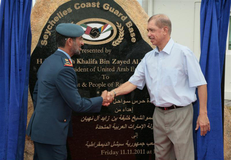 The President unveiled the Seychelles Coast Guard Base plaque, which was witnessed by Deputy Chief of Staff of the United Arab Emirates Armed Forces, Major General Eissa Saif Mohammed Al-Mazroui, the UAE Ambassador to Seychelles, Mallallah Mubarak Al-Ameri as well as military and civilian dignitaries from the Seychelles and the UAE.