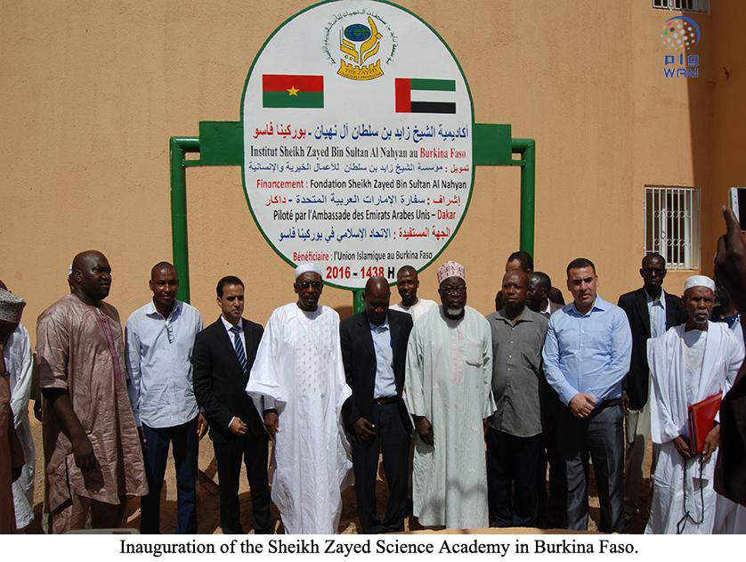 OUAGADOUGOU, Burkina Faso, 29th November, 2016 (WAM)-- An educational institution named after the founder of the UAE, the late Sheikh Zayed bin Sultan Al Nahyan, has been inaugurated in the capital of Burkina Faso in celebration of the 45th UAE National Day. Built by the Zayed bin Sultan Al Nahyan Charitable and Humanitarian Foundation to serve some 500 male and female students, the five-storey Sheikh Zayed Science Academy in Ouagadougou is the largest educational institution in Burkina Faso and neighbouring countries. Dr. Abu Bakr Dakuri, head of Burkina Faso's Muslim Association and religious advisor to the country's president, thanked the UAE agency for the generous gesture and noted that the government and people of the UAE take a keen interest in supporting human development. Dakuri also prayed for the late Sheikh Zayed, the namesake of the academy. Local officials and representatives of local charities attended the ceremony, which was overseen by the UAE Embassy in Dakar. http://www.wam.ae/en/news/emirates/1395303854039.html