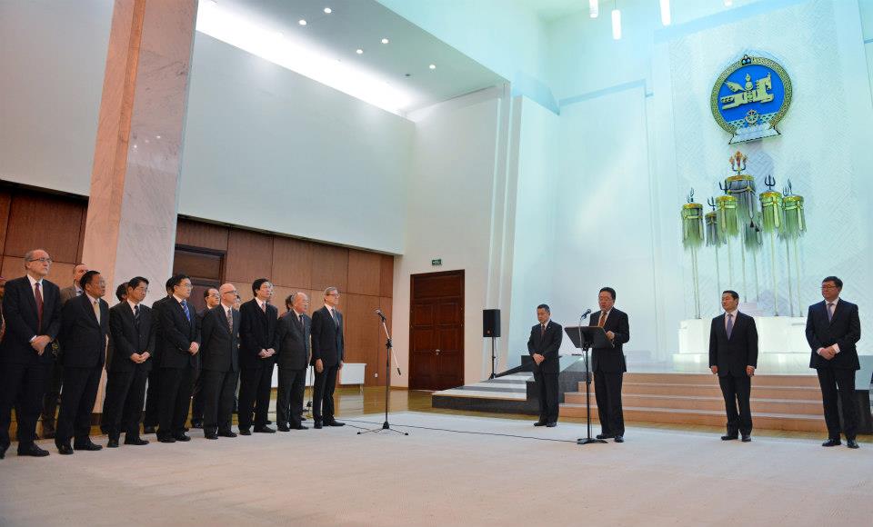 Ulaanbaatar /MONTSAME/ Mongolia has established diplomatic relations with 168 countries so far, and 2012 was the greatest year for Mongolia to have achievements in ties with foreign countries. The President of Mongolia said it Wednesday during receiving heads of the diplomatic and consular missions of foreign countries in Mongolia, together with Parliament Speaker Z.Enkhbold; and the Prime Minister N.Altankhuyag in the State House. He thanked the gathered for arriving in the meeting, and wished the best at works, congratulating them on the New Year. Representing the diplomatic and consular mission heads, the Ambassador Extraordinary and Plenipotentiary of Russia to Mongolia V.V.Samoilenko delivered a speech to the state leaders. He underlined that Mongolia 2012 was the highlight year, for example, the country organized successfully its parliamentary and local elections and formed new parliament and cabinet. Mr Samoilenko wished Mongolian people health and a great development. The meeting brought together heads of 20 diplomatic missions, and eight Permanent Representives of international organizations to Mongolia. B.Khuder