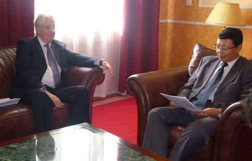Ulaanbaatar, Mongolia /MONTSAME/ The State Secretary of the Ministry of Foreign Affairs, Mr G.Tsogtsaikhan received the Brazilian Non Resident Ambassador to Mongolia, Mr Clodoaldo Hugueney on September 24.