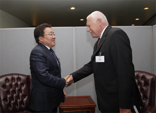 Ulaanbaatar, Mongolia /MONTSAME/ Taking part in the 67th session of the UN General Assembly, the President Ts.Elbegdorj met on Tuesday his counterpart from the Czech Republic Mr Vaclav Klaus.