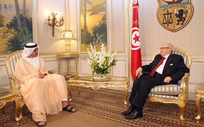 TUNIS, 17th March, 2015 (WAM) – Tunisian President Beji Caid Essebsi, yesterday received UAE Foreign Minister H.H. Sheikh Abdullah bin Zayed Al Nahyan who is currently on a visit to Tunisia. Sheikh Abdullah conveyed to President Essebsi greetings of President His Highness Sheikh Khalifa bin Zayed Al Nahyan, Vice President and Prime Minister and Ruler of Dubai His Highness Sheikh Mohammed bin Rashid Al Maktoum and His Highness Sheikh Mohamed bin Zayed Al Nahyan, Crown Prince of Abu Dhabi and Deputy Supreme Commander of the UAE Armed Forces, and their wishes of further progress and prosperity to the people of Tunisia. President Essebsi welcomed Sheikh Abdullah and asked him to pass on his greetings to Sheikh Khalifa, Sheikh Mohammed bin Rashid Al Maktoum and Sheikh Mohamed bin Zayed Al Nahyan and his best wishes to the people of the UAE. He praised the deep-rooted ties between the UAE and Tunisia and expressed his country's keenness to further strategic bilateral co-operation and co-ordination. Sheikh Abdullah attended a lunch banquet hosted in his honour by the Tunisian President. Also in attendance were Dr. Sultan bin Ahmed Sultan Al Jaber, Minister of State, Major-General Faris Mohammed Ahmed Al Mazrouei, Assistant Foreign Minister for Security and Military Affairs and Isa Al Qattam Al Zaabi, UAE Ambassador to Tunisia. – Emirates News Agency, WAM – http://www.wam.ae/en/news/emirates-arab/1395278027220.html