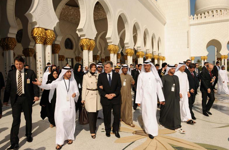 Abu Dhabi, Jan 31, 2012 (WAM) - President of Turkey Abdullah Gul and his wife Hayrunnisa on Tuesday visited the Sheikh Zayed Grand Mosque in Abu Dhabi. Gul and his wife who were accompanied by the UAE's Minister of Economy Sultan Saeed Al Mansouri who heads the honorary mission, first visited the tomb of the late Sheikh Zayed Bin Sultan Al Nahyan. They were received by Director General of the Sheikh Zayed Grand Mosque Centre Yousef Al Obaidali. They expressed appreciation of the beautiful Islamic architecture of the mosque. The Sheikh Zayed Grand Mosque Centre is an affiliate of the UAE's Presidential Affair's Ministry. - Emirates News Agency, WAM