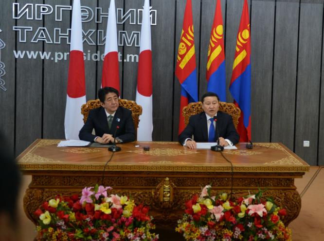 Mr Shinzo Abe said an importance of Mongolia in Japan's foreign policy is increasing, and promised to help and cooperate in realization of middle and long term development goals of Mongolia, for example, a construction of diagnose center, a launching of a construction of a new international airport, erecting of an oil refinery in Darkhan and so on.