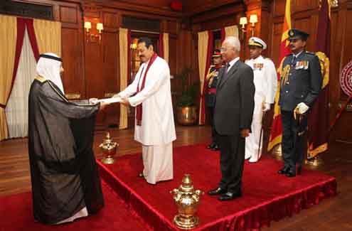 Colombo: Sept 16, 2012 (WAM) - UAE Ambassador in Colombo Abdel Hamid Abdel Fatah Kadhim presented his credentials to Sri Lankan President Mahinda Rajapaksa. At the ceremony, the ambassador conveyed greetings of President His Highness Sheikh Khalifa Bin Zayed Al Nahyan to the Sri Lankan Head of State.