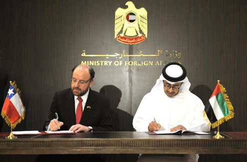Abu Dhabi, Aug 7, 2012 (WAM) - The UAE Foreign Ministry and the Ministry of Foreign Affairs of Republic of Chile last night signed a Memorandum of Understanding (MoU) on political consultations.