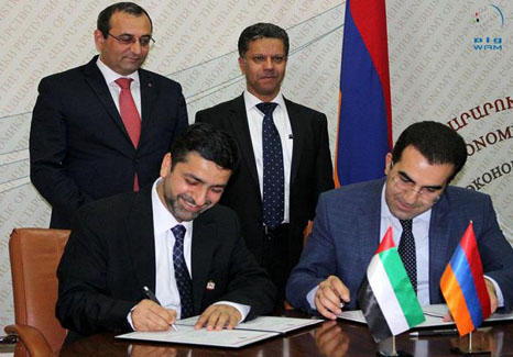 The agreement was signed by Younis Haji Al Khouri, Under-secretary of the UAE's Ministry of Finance and Garegin Melkonyan, Armenian Deputy Economy Minister, in presence of Artsvik Minasyan, Armenian Economy Minister and Dr. Jassem Mohammed Al Qasimi, UAE Ambassador to Yerevan.