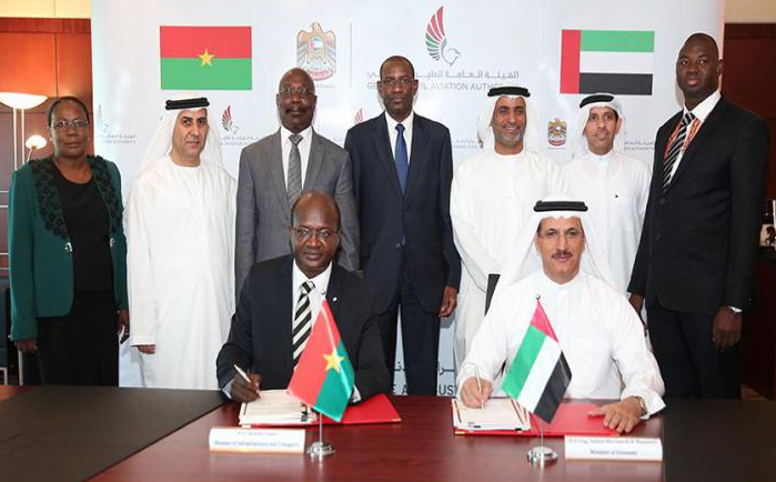 The agreement was signed by Sultan bin Saeed Al Mansouri, Minister of Economy and Chairman of GCAA and Daouda TRAORE, Minister of Infrastructures and Transports of Burkina Faso.