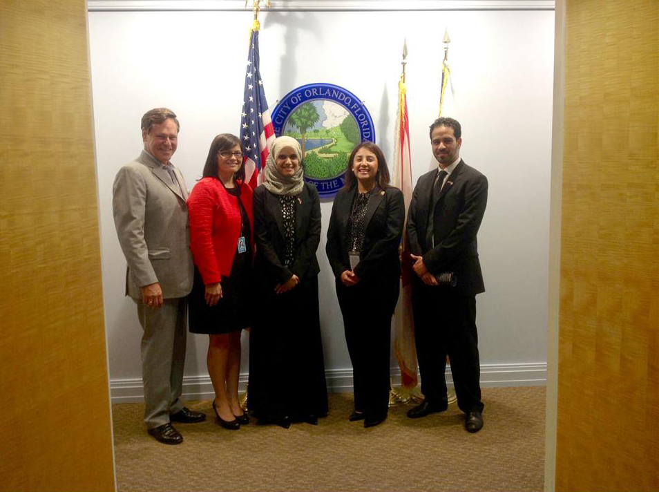 While in Orlando, the diplomats were received by senior officials from the Office of Mayor Buddy Dyer and given a tour of City Hall. During the meeting, they discussed methods to continue expanding the cultural, social and economic relationship between Orlando and the UAE. The diplomats also visited Enterprise Florida, the National Entrepreneur Centre, and University of Central Florida's Business Incubation Centre to learn more about Florida's initiatives in entrepreneurship.
