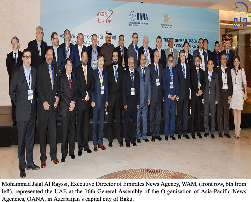 BAKU, 20th November, 2016 (WAM) -- The UAE was selected by the 16th General Assembly of the Organisation of Asia-Pacific News Agencies, OANA, to be a member of OANA's committee of professional ethics during a meeting held yesterday in Azerbaijan’s capital city of Baku.