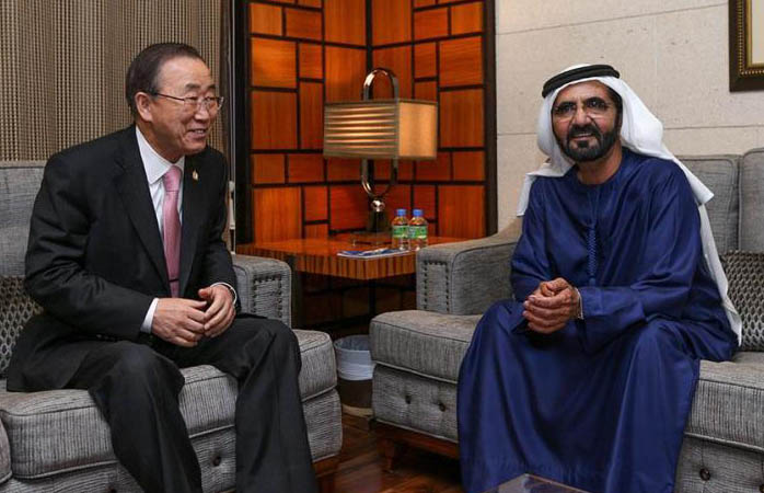 DUBAI, 11th February, 2015 (WAM) -- The United Nations Secretary-General Ban Ki-moon has said that the UN is trying to mobilise political, business, community and civil society leaders in an effort to do more for addressing climate change. "We have to have all hands on deck. It’s not only government or business leaders, or civil society leaders, but also individual citizens, as every citizen can play a very important part in addressing climate change," said Ban Ki-moon. Speaking to Emirates News Agency, WAM, yesterday, on the side-lines of the Government Summit in Dubai, about the UAE’s efforts in dealing with the issue, the Secretary-General said, "The UAE has been playing a very important role. We are very much grateful. First of all in regards to national policies, the UAE is one of the champion and leading countries in investing in renewable sources of energy, particularly through solar power." Mr Ban said that the Abu Dhabi Ascent conference, which was held last year in support of climate change, was an important conference which created momentum where government ministers, business, finance and civil society leaders, joined and showed their solidarity and discussed initiatives and partnerships to tackle climate change. Another example of the UAE’s proactive involvement in the issue, he said, is the UAE’s support in providing clean energy in African developing countries and Small Islands Developing States, SIDS, through the lighthouse initiative, connecting them with clean and efficient energy. The UN Secretary-General said that 2015 is a year for global action, calling it, "One of the most crucially important years for humanity." "First of all, we meet the deadline of millennium development goals, and member states are working very hard to shape the post-2015 development agenda with a set of sustainable development goals. They have initially identified 17 goals which include poverty eradication and moving towards a climate friendly world," he said. Mr Ban noted that one of the most major steps this year will be the signing of the climate change agreement in Paris in December. "These are our priorities," he explained. He said that meeting all these priorities will require having a means and plans of implementation that will be hashed out during the third International Conference on Financing for Development to be held later this year in Addis Ababa, Ethiopia. "The member states will gather in Addis Ababa in July to discuss the mechanisms, financial and technological support to help implement sustainable development goals and climate change agreement with the UN. "The UN is also trying to form a string partnership with the governments in community and civil society. Those are the priorities for 2015. Our goal is to make the world better for all where nobody will be left behind," he concluded. – Emirates News Agency, WAM – http://www.wam.ae/en/news/emirates/1395276329225.html
