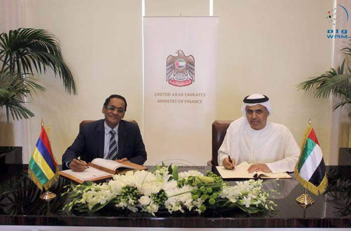 The agreement was signed by Obaid bin Humaid Al Tayer, Minister of State for Financial Affairs and Vishnu Lutchmeenaraidoo, Minister of Finance and Economic Development of Mauritius, in the presence of Saeed Rashid Al Yateem, Assistant Under-Secretary of Resources and Budget Sector, and Majid Ali Omran, Director of International Financial Relations Department, along with members of the Mauritius delegation.