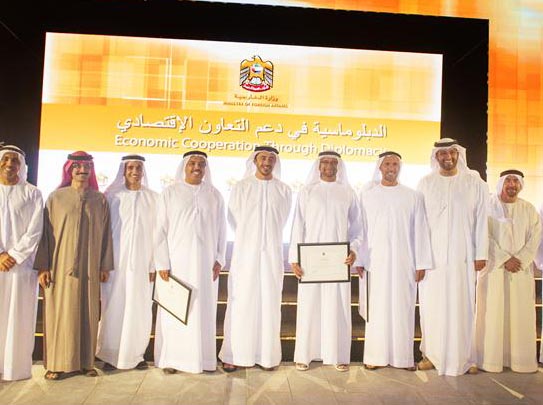 Abu Dhabi: Foreign Minister H.H. Sheikh Abdullah bin Zayed Al Nahyan attended on Monday the second reception of the Ministry of Foreign Affairs (MoFA), held under the theme "Diplomacy in support of economic cooperation. Present at the reception were Sheikh Sultan bin Tahnoun Al Nahyan, Chairman of the Abu Dhabi Tourism and Culture Authority, Sheikha Lubna bint Khalid Al Qasimi, Minister of Development and International Co-operation, Sheikh Mohammed bin Hamdan bin Zayed Al Nahyan, Sultan bin Saeed Al Mansouri, Minister of Economy, Suhail bin Mohammed Faraj Faris Al Mazrouei, Minister of Energy, Obaid bin Humaid Al Tayer, Minister of State for Financial Affairs, Dr. Sultan bin Ahmed Sultan Al Jaber, Minister of State, representatives of the ministry's partners, members of the business community, ambassadors of Arab and foreign countries, and representatives of foreign companies. In his speech, Sheikh Abdullah said the event comes one year after the debut reception for the ministry. "We meet today after an eventful year that saw huge developments in the UAE, inspired by the principles laid by the late Sheikh Zayed bin Sultan Al Nahyan and maintained by President His Highness Sheikh Khalifa bin Zayed Al Nahyan. We also meet after just celebrating two major events; the 42nd National Day anniversary and the UAE, represented by Dubai, winning the bid to host EXPO 2020," he added. Sheikh Abdullah underlined the achievements made by the UAE this year, including ranking world's 33rd in the Ease of Doing Business survey by the World Bank. In the Global Competitiveness Report for 2013-2014, the UAE advanced five positions in the total competitiveness of its economy in one year, from 24th last year to the 19th this year. On the federal government's strategy to boost national economy, Sheikh Abdullah said the economic sector at the Ministry of Foreign Affairs had adopted plans to support the country's investments abroad and to explore investment opportunities in emerging markets. "The UAE seeks to enhance its economic competitiveness by diversifying its resources and by building a knowledge-based economy, driven by Research '&' Development to make the UAE a hub for smart economy in the region." Sheikh Abdullah said bilateral agreements constituted key part of the ministry's operations. He referred to the close cooperation the ministry has with strategic partners, including Ministries of Finance, Economy, Development '&' International Cooperation, as well as other federal and local entities such as the General Civil Aviation Authority, the Central Bank, Federal Customs Authority and the Abu Dhabi Investment Authority. He added that the UAE, through the MoFA and other authorities, is keen to develop legislative framework to guarantee that its balanced economic growth is in line with the international conventions and laws, including Free Trade Agreements (FTAs). "UAE's foreign policy is founded on a set of values and principles laid by the founding fathers and nurtured by our leadership. This is clearly manifested in the UAE's support for the approach of peaceful settlement of all conflicts. There is no doubt that political stability, economic growth and balanced foreign policy are key incentives for the world's leading businesses to establish their regional centres in the UAE." Sheikh Abdullah also said the government attaches great importance to national companies with investments abroad. He added that the country's active diplomacy helped achieve significant progress in addressing issues like dumping, high customs fairs on UAE products, taxes, restrictions on profits and capitals transfer and on national carriers flights. Sheikh Abdullah said the UAE was supporting the Egyptian government's efforts to support its economy and to facilitate investment there. He pointed out that the recent GCC-Egyptian investment forum in Cairo, co-hosted by the UAE and Egypt, had achieved a positive outcome in attracting more GCC investments in Egypt. He thanked Dr. Sultan bin Ahmed Al Jaber for his role in forum's success. Sheikh Abdullah said the exemption of the UAE citizens from the visa requirement to the United Kingdom was a fruit of the MoFA's efforts to ease movement of the UAE nationals. He also referred to the efforts being made to secure exemption for the UAE citizens traveling to the Schengen countries, adding that such a step would help strengthen ties between the UAE and the European Union. Sheikh Abdullah said Dubai's winning the bid to host EXPO 2020 after a stiff and transparent competition with leading cities, was a result of world's confidence in the UAE and its competitive economy. "The winning of EXPO 2020 bid is a great incentive to major companies in the world to use the UAE as a launch-pad for their businesses," he added. Sheikh Abdullah revealed that the UAE ambassadors were directed to ease all obstacles that could face investors willing to open businesses in the UAE. He also urged partners from the private sector to explore investment opportunities in emerging economies, especially in Africa, South America, Caribbean and East Asian countries. "The coming years are very important to us in maintaining our national achievements and in expanding the role played by the foreign, economic and investment policies in the global economy," he said. Sheikh Abdullah urged a teamwork spirit among all the concerned in a way that will serve UAE's national economy. "The ministry of foreign affairs will continue to provide support to our economic partners," he said. – Emirates News Agency, WAM