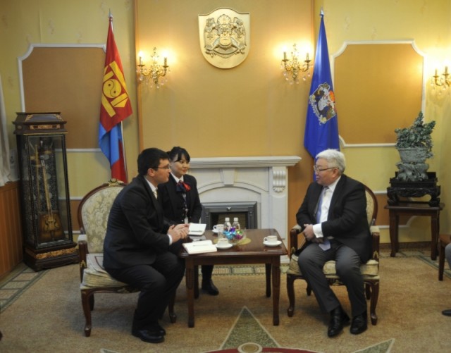 Ulaanbaatar /MONTSAME/ Ulaanbaatar city Mayor Mr E.Bat-Uul recieved Mr Erdinc Calkir, the General manager of Turkish air transportation "Turkish airlines" company on January 9.