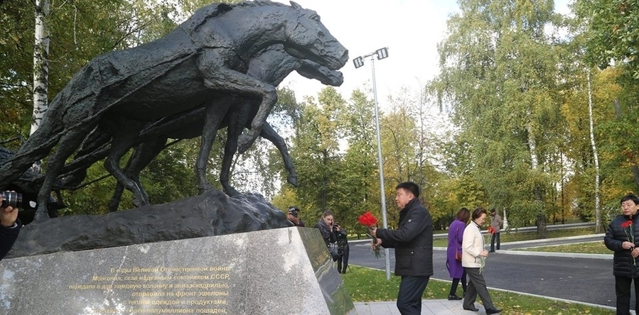 On October 8, a delegation led by S.Batbold paid tribute to the Monument of Mongolian Horses in the Victory Alley. This monument, on which writes ‘Horses toward victory’, has been erected dedicated to a memory of horses that were gifted from Mongolian people to Russia during the Great Patriotic War.