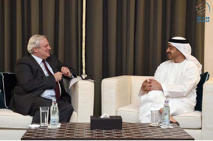 ABU DHABI, 9th September 2015 (WAM) – Foreign Minister, H.H. Sheikh Abdullah bin Zayed Al Nahyan, yesterday received Stephen O'Brien, the United Nations (UN) Under-Secretary-General for Humanitarian Affairs and Emergency Relief. O'Brien offered condolences to Sheikh Abdullah on the Emirati martyrs who fell while participating in the Saudi-led Arab coalition operations. The meeting touched on the co-operation between the UAE and the UN and the international organisation's humanitarian programmes in a number of countries hit by disasters and conflicts. Sheikh Abdullah re-affirmed President His Highness Sheikh Khalifa bin Zayed Al Nahyan's keenness to enhance the role played by the UAE in the humanitarian arenas. He added that the UAE seeks to continue its efforts and contributions in all humanitarian fields as the world is currently witnessing many challenges, including that of refugees and displaced people. O'Brien praised the UAE's pioneering role, initiatives and support to the international organisations and their humanitarian projects worldwide. He also commended the country's support to developing and poor countries and the quick delivery of aid to the needy around the world. The meeting was attended by Dr. Sultan bin Ahmed Sultan Al Jaber, Minister of State. – Emirates News Agency, WAM - http://www.wam.ae/en/news/emirates/1395285281487.html