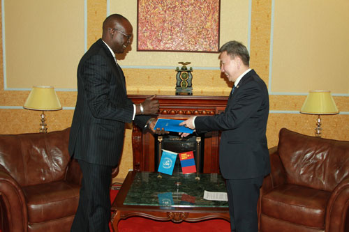 Ulaanbaatar, Mongolia /MONTSAME/ The newly appointed Permanent representative of the United Nations Children's Fund (UNICEF) to Mongolia, Mr Mohamed Fall has handed over a letter of credence to the Minister of Foreign Affairs Mr L.Bold.