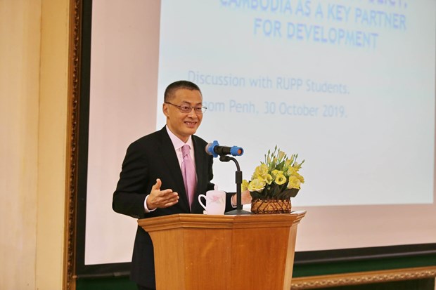 Phnom Penh, November 1 (VNA) – Vietnamese Ambassador to Cambodia Vu Quang Minh delivered a presentation on Vietnam’s diplomatic policy at the Royal University of Phnom Penh on October 30, highlighting the development of the partnership between the two nations.