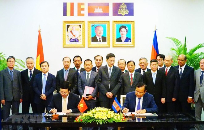Vietnam and Cambodia agreed to undertake a number of measures to promote economic, trade and investment partnership, and facilitate border trade through upgrading border infrastructure and enhance connection of roads, waterway roads and tourism.