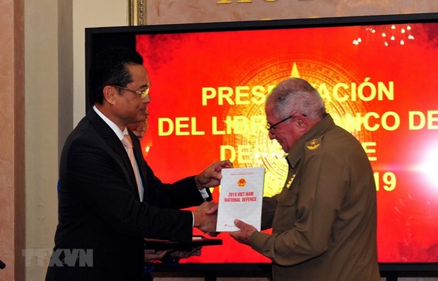 Havana, December 23 (VNA) - The Vietnamese Embassy and the Office of Vietnamese Defence Attachés in Cuba held a ceremony in Havana on December 20 to debut the Vietnam Defence White Paper 2019. Speaking at the event, Vietnamese defence attaché in Cuba Col. Ta Van Phang said the Vietnam Defence White Paper 2019 is meant to continue affirming that Vietnam advocates peace and self-defence in its national defence, point out challenges and revisions to defence policy, and improvement of defence capability for national protection. The paper also contributes to raising understanding and building trust between Vietnam and countries in the international community, for the sake of peace, friendship, cooperation and development, he said. Politburo member, Chief of the General Staff and First Deputy Minister of the Cuban Ministry of the Revolutionary Armed Forces Sen. Lieut. Gen Álvaro López Miera, for his part, hailed the paper as a collection of invaluable experience by a peace-loving nation that beat the strongest hostile forces to protect its independence and freedom. On the occasion, a ceremony to mark the 75th anniversary of the Vietnam People’s Army and the 30th anniversary of All-People Defence Festival was also held. Addressing the event, Vietnamese Ambassador to Cuba Nguyen Trung Thanh highlighted comprehensive cooperation and mutual trust between the Vietnam People’s Army and the Cuban revolutionary armed forces, which he said, has been one of the most vivid evidence of exemplary and loyal relationship founded and fostered by Presidents Ho Chi Minh, Fidel Castro, and generations of the two countries’ leaders. About 200 guests watched documentaries about Vietnam’s fight for independence and national construction, and enjoyed music performances by Vietnamese students in Cuba’s military training establishments at the event./.