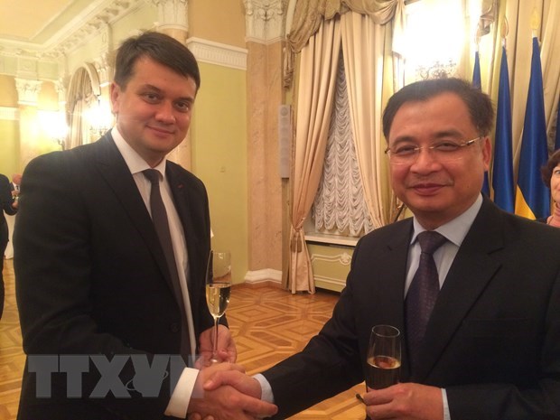 Moscow, October 24 (VNA) – Vietnamese Ambassador to Ukraine Nguyen Anh Tuan has paid a courtesy call to Chairman of the Verkhovna Rada (Ukrainian parliament) Dmytro Razumkov, who just assumed the post in August. At the on October 21 meeting, the diplomat delivered a congratulatory letter from Chairwoman of the Vietnamese National Assembly (NA) Nguyen Thi Kim Ngan to the host country’s top legislator. In her letter, Ngan said she believes with his wisdom and determination, Razumkov will effectively lead Ukraine in terms of lawmaking and supervision, creating a basis for stability and development. She hoped the Vietnamese and Ukrainian parliaments will continue working closely together within the framework of bilateral and multilateral cooperation to contribute to their traditional friendship and comprehensive partnership. Razumkov asked Tuan to convey his wish to visit Vietnam and exchange views with the local NA on lawmaking, supervision, and anti-corruption work. He also spoke highly of Vietnam’s socio-economic and diplomatic progress as well as its efforts to build a rule-of-law state./.
