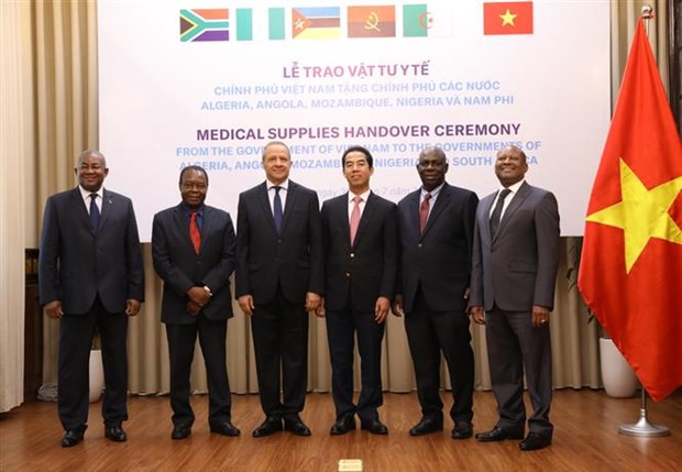Hanoi, July 31 (VNA) - Deputy Foreign Minister To Anh Dung on July 30 presented medical supplies from the Vietnamese Government worth 250,000 USD to the five African countries of Algeria, Angola, Mozambique, Nigeria, and South Africa, to help them battle COVID-19. The aid package comprises Made-in-Vietnam antimicrobial and medical masks and test kits for SARS-CoV-2, which causes COVID-19. Speaking at the handover ceremony, Dung underlined that the pandemic has spread all over the world with complex and unpredictable developments. As Vietnam and African countries have nurtured traditional friendships, the Vietnamese Government decided to offer part of its resources to support the governments and people of these countries. The beneficiaries supported Vietnam during the country’s struggle for re-unification in the past and development and integration in the present, Dung added. He also spoke highly of the stringent and effective measures adopted by the governments as well as the determination of the people in the African countries in battling COVID-19, affirming that Vietnam is ready to share experience in pandemic prevention and combat with African nations and international friends. Ambassadors from recipient countries thanked the Vietnamese Government and people for the valuable assistance, describing it as proof of the traditional friendship between the countries and Vietnam. They also praised Vietnam’s achievements in fighting the pandemic over the past time and pledged to closely coordinate and step up cooperation with the Southeast Asian country in mitigating the socio-economic impact of COVID-19 and enhancing recovery in the post-pandemic period./.