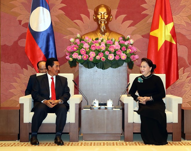 Hanoi, August 21 (VNA) – Chairwoman of the National Assembly Nguyen Thi Kim Ngan hosted a reception for Vice President of the Lao National Assembly Bounpone Bouttanavong in Hanoi on August 20. The host said the Vietnamese NA highly values Bounpone Bouttanavong’s visit and considers consolidating and developing the Vietnam-Laos relationship a strategic task. She briefed her guest on Vietnam’s socio-economic situation, with gross domestic product (GDP) expected to grow 6.76 percent in 2019. Ngan rejoiced at the implementation of documents signed by Vietnamese and Lao top legislators and urged the Committees for External Relations of the two legislatures to set forth a cooperation plan for 2020, aiming to improve the efficiency of collaboration. For his part, Bounpone Bouttanavong informed the host about outcomes of his talks with his Vietnamese counterpart Phung Quoc Hien. The two sides agreed to continue their coordination in organising high-level visits of legislative leaders, thematic seminars for agencies of the parliaments and training courses on law building, the Lao legislator said, expressing his hope that the legislatures will step up their cooperation in the time ahead. He highlighted the success of the recent seventh conference of external relations committees of Vietnamese, Lao and Cambodian parliaments in Vietnam’s northern province of Quang Ninh. Laos will closely coordinate with Vietnam when the country assumes the role as Chair of the Association of the Southeast Asian Nations (ASEAN) and the ASEAN Inter-Parliamentary Assembly (AIPA) in 2020. Host and guest shared the views that the Lao NA House is a significant project to the Vietnamese and Lao Parties, States, NAs and peoples, and pledged to maintain their close coordination in order to ensure the quality and progress of the project. On this occasion, Bounpone Bouttanavong conveyed the invitation of NA President Pany Yathotou to the Vietnamese top legislator to soon visit Laos. NA Chairwoman Ngan accepted the invitation with pleasure./.