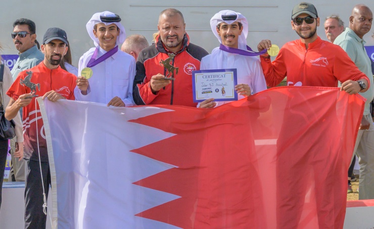 Castelsagrat, Sept. 3 (BNA): With the follow-up of HM the King's Representative for Humanitarian Work and Youth Affairs, Royal Endurance Team Captain, His Highness Shaikh Nasser bin Hamad Al Khalifa, the Royal Endurance Team riders were officially crowned as winners of the FEI Endurance World Championship for Young Riders and Juniors, held in Castelsagrat, with the participation of 70 jockeys from various countries.
