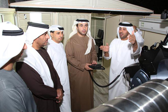 Abu Dhabi (WAM): Major General Dr. Ahmed Nasser Al Raisi, Director General of Central Operations at Abu Dhabi Police, has recently inaugurated the Emirates Mobile Observatory in the presence of a number of officers. The observatory is the latest and largest integrated astronomical observatory in the region. Work is currently underway to include it in the International Astronomical Union's network of robotic telescopes designed for meteorological and astronomical research. Major General Al Raisi praised the initiative which represents another outstanding achievement for the Abu Dhabi Police in particular and the UAE in general. "This achievement reflects the UAE people's sense of belonging and patriotism, and their urgent desire to add further scientific leading achievements at the local and international levels. This, in turn, would strengthen the UAE's prominent position as one of the states that take interest in scientific research. Major General Al Raisi called on the Emirates Mobile Observatory to continue its quest to spread the astronomical and scientific education among the various segments of society. He also reiterated the police leadership's support for such achievements and initiatives that reflect the desire of the UAE youth to strive for excellence in all areas. During the inauguration, a presentation was made on the development phases of the observatory from 2000 until 2014. Major General Al Raisi put the telescope into operation, by directing it towards astronomical targets. For his part, Nizar Salam, Chairman of the Emirates Mobile Observatory, UAE representative at the Astronomers without Borders (AWB) organisation, and member of the Arab Union for Astronomy and Space Sciences (AUASS) said: "The CDK [Corrected Dall-Kirkham] telescope is the first of its kind and one of the latest designs compared to other astronomical telescopes. It was manufactured in the United States. The eight-month long manufacturing process was carried out in accordance with the highest technical standards and specifications, after signing the purchase agreement between the Chairman of the Emirates Mobile Observatory and the manufacturing company (PlaneWave), during the General Assembly of the International Astronomical Union which was held in Beijing in 2012." He added: "The carbon fibre telescope design has a mirror diameter of 610 mm with a 3962 mm focal length and a field of view of 70 mm. This allows astronomical imaging of celestial bodies using specialised astronomical cameras. Compared to the naked eye, the telescope can gather 8000 times more light than the human eye; which gives a clear view of dim stars employing a light-pollution filter. He also noted that the telescope is placed on a self-rotating base to track celestial bodies with precision. It carries 350 pounds of optical equipment and is operated through astronomical software and computer networks. Adding further, Dr. Salam said that the telescope has a unique design and a combination of mirrors and lenses, and will be used to observe astronomical phenomena using ocular lenses and for astrophotography (Astronomical imaging) via colour filters (RGB) or narrowband filters that transmit wavelengths emitted by the hydrogen and oxygen atoms. "This would allow astronomical imaging even in the most light-polluted. The telescope is equipped with an auto-focus control unit and a temperature sensor to cool the mirrors using 7 fans that operate automatically; in addition to an anti-dewing device," he said. He also said: "The telescope will be used for scientific research purposes, such as discovering and capturing images of Supernova explosions, studying extra solar transits, discovering comets and asteroids. Astrophotography is carried out at temperatures below the telescope's outside temperature, as low as -70 C; this means that imaging will take place at below zero temperatures throughout the summer, and this ensures high-quality images." It is worth mentioning that the observatory has a custom-built mobile electric roof system, an anti-dewing cooling system. A weather station is also available on-site, with a primary and a secondary control room, which provides remote web-based control of the telescope via the Emirates Mobile Observatory website. The telescope is the biggest astronomical telescope in the Gulf region, which is intended to serve members of the public. It will be used to observe astronomical phenomena and activities, in cooperation with educational and scientific research authorities. – Emirates News Agency, WAM