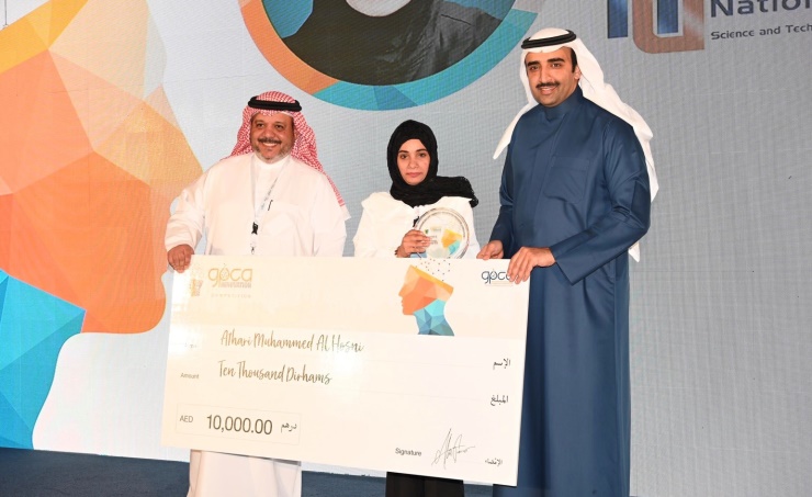 Athari Muhammed Al Hosni from Caledonian College of Engineering of the National University of Science and Technology in Oman won first place in the competition and a cash prize of AED 10,000 for ‘Production of polymers from sulfur solid waste’.