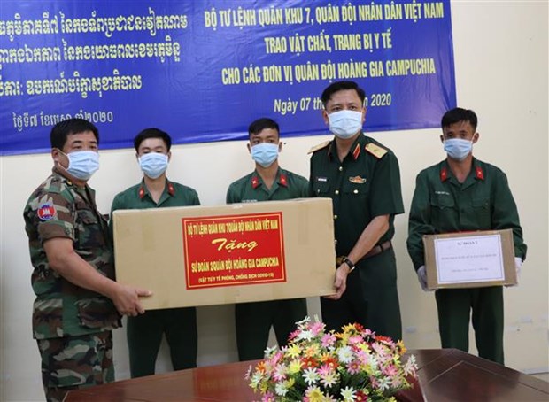 Tay Ninh, April 8 (VNA) - The High Command of Military Region 7 of the Vietnam People’s Army (VPA) on April 7 handed over medical supplies and equipment to some units of the Cambodian Royal Army to fight the COVID-19 pandemic.