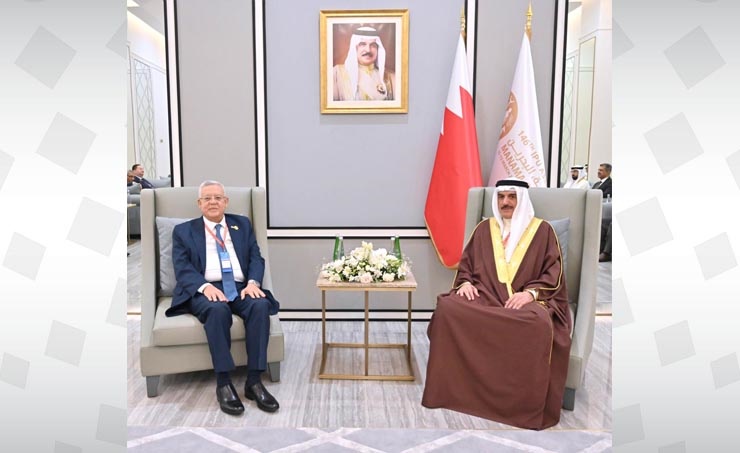 Manama, Mar. 14 (BNA): Speaker of the Council of Representatives, President of the 146th Assembly of the Inter-Parliamentary Union (IPU), Ahmed bin Salman Al-Musallam, received here today the Speaker of Egypt's House of Representatives, Dr. Hanafy Ali Gebaly, and his accompanying delegation, who are participating in the 146th IPU Assembly, currently held at the Exhibition World Bahrain.