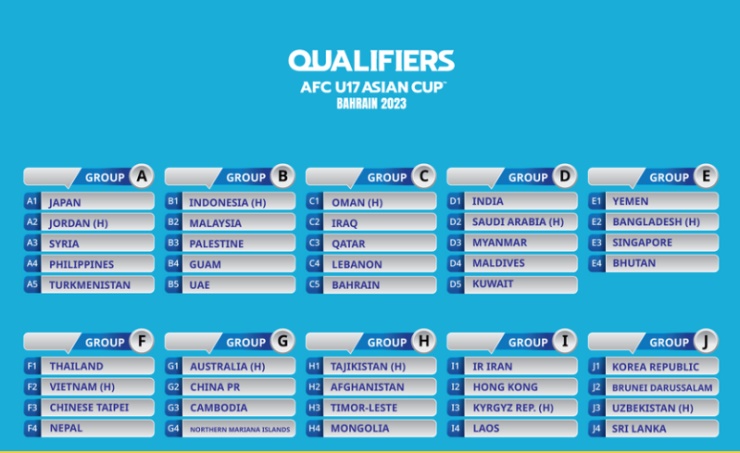 Group E will feature Yemen, hosts Bangladesh, Singapore and Bhutan while Vietnam will welcome Thailand, Chinese Taipei and Nepal in Group F.