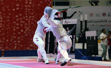 Manama, Feb. 29 (BNA): Risa Takashima (JPN) played Yoon Cho (KOR) winning 15-12 points respectively in the final round of fencing duel held on the fourth day of All Asia Junior Fencing Championship hosted by Bahrain Fencing Association (BFA) and co-organized by the Kingdom of Bahrain and the Kingdom of Saudi Arabia under the patronage of His Majesty the King's Representative for Charity and Youth Affairs, also Chairman of the Supreme Council of Youth and Sports (SCYS) and President of Bahrain Olympic Committee (BOC), His Highness Shaikh Nasser bin Hamad Al Khalifa.