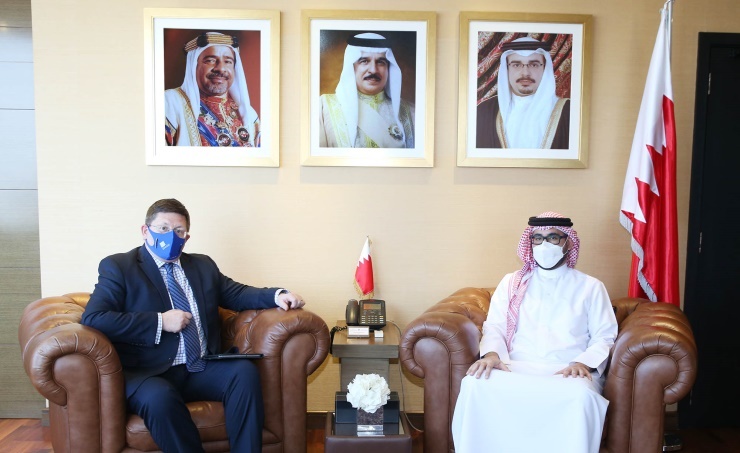 Manama, Nov.22 (BNA): Youth and Sports Affairs Minister Aymen bin Tawfiq Almoayyed today received British Ambassador Roddy Drummond and discussed cooperation between the Kingdom of Bahrain and the United Kingdom. The minister noted aspects of joint cooperation between the two countries across all fields, reiterating Bahrain’s keenness on benefiting from the British expertise in the youth and sports sectors. The British envoy highlighted strong historic relations binding the two friendly countries, stressing the importance of further bolstering joint cooperation.