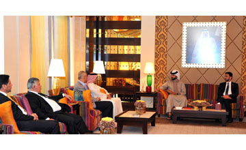 Manama, Mar. 24 (BNA): Representative of His Majesty the King for Charity Work and Youth Affairs, Chairman of the Supreme Council for Youth and Sport (SCYS) and President of Bahrain Olympic Committee Shaikh Nasser bin Hamad Al Khalifa received Iraqi Minister of Youth and Sport Affairs Abdul Hussain Abdul Redha Abtan. The meeting was also attended by SCYS Secretary General Shaikh Salman bin Ibrahim Al Khalifa, Youth and Sport Affairs Minister Hesham bin Mohammed Al Jowder, Iraqi Ambassador to Bahrain Dr. Ahmed Al Dulaimi, President of Iraq Olympic Committee Ra’ad Hamoudi, President of Bahrain Football Association Shaikh Ali bin Khalifa Al Khalifa and President of the Iraqi Football Federation Abdul Khalaq Mesoud. Shaikh Nasser lauded growing relations between both countries and keenness to further enhance them at all levels. He discussed with the Iraqi Youth and Sport Affairs Minister ways of bolstering bilateral cooperation mainly in the youth and sport field. On his part, the Iraqi minister underlined his country’s keenness to boost cooperation with Bahrain, lauding the kingdom’s efforts to promote the youth and sport momentum. He also stressed the importance of the meeting in availing of both countries’ experiences in the youth and sport field.
