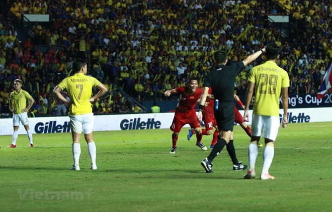 Bangkok, June 6 (VNA) – Vietnam’s football team secured its win at the last minute of the added time of an opener against Thailand of the football King’s Cup 2019 on June 5 after a header by forward Anh Duc following a corner kick by midfielder Xuan Truong found the net of its arch rival. Before that, goalie Van Lam’s net was shaken at the 70th minute, but the goal for Thailand was ruled out as the referee determined that a host defender had fouled a Vietnamese player. This served as a warning for Vietnam that they needed to cement their control of the middle field. Midfielders Quang Hai had a spectacular shot at the 80th minute but the ball missed the bar by inches only, much to the regret of spectators both at the stadium and watching the match on TV. At the 89th minute, Xuan Truong was sent in as a strategic substitute and he proved his value with the corner kick which found Anh Duc’s head. The header was so powerful that the Thai goalie could not block the rebounding ball. With the score, Vietnam proved that they are reigning champions in Southeast Asia. King’s Cup is a friendly four-side competition held annually. This year, Vietnam, India, Curacao and the host - Thailand compete from June 5-8.-VNA
