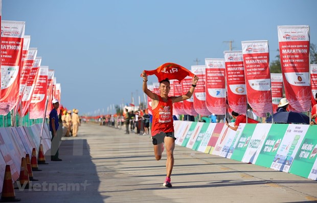 Quang Ngai, July 6 (VNA) – Close to 2,000 runners from across Vietnam took part in the 61st Tien Phong Newspaper Marathon, the country’s oldest annual marathon, around Ly Son island in the south-central province of Quang Ngai on July 5. The race, co-hosted by the Tien Phong Newspaper, the Vietnam Athletics Federation and the provincial Department of Culture and Sports, attracted both professional and amateur athletes. Addressing the opening ceremony, Tien Phong’s Editor-in-Chief Le Xuan Son said the event has been one of the country’s most important races for over half of the century. It had been held in March annually to mark the founding of the Ho Chi Minh Communist Youth Union (March 26) and Vietnam Sports Day (March 27), but this year was rescheduled to July because of the COVID-19, he said. Professional athletes competed in four distances, including 5km, 10km, 21km and 42km, while amateur runners joined 10km, 21km and 42km events. The prize for the best team went to Binh Phuoc while in the second place was occupied the team of Quang Ngai.-VNA