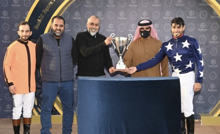 On the other hand, Shaikh Salman bin Rashid Al Khalifa, CEO of the Rashid Equestrian and Horseracing Club, presented the trophy of Cup of HH Shaikh Sultan bin Hamad Al Khalifa for Arabia Horses to winning trainer, Abdulla Kuwaiti, and the trophy of the fourth round to winning owner, Mohammed Qambar.