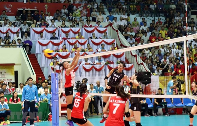 Quang Nam, August 12 (VNA) – Vietnam came second at the international women’s volleyball tournament – VTV Cup Ton Hoa Sen 2019 after losing 1-3 to the NEC Club of Japan in the finale that took place in the central province of Quang Nam on August 10 evening. Vietnam won the first set with the score of 29-27 while Japan won three later consecutive rounds with scores of 25-17, 25-17, and 25-16. Earlier, the Democratic People's Republic of Korea (DPRK) claimed the third position after beating China’s Fujian club 3-0. The VTV Cup Ton Hoa Sen 2019 saw the participation of seven teams divided into two groups. Group A consists of Vietnam, Kazakhstan’s Altay club, and China’s Taipei university, while Group B comprises of Japan’s NEC club, China’s Fujian club, the DPRK, and Australia. The tournament was jointly organized by the Vietnam Television, the Vietnam Volleyball League and the People’s Committee of Quang Nam province./.
