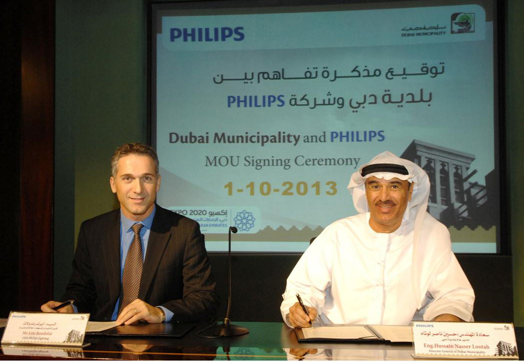 Dubai: In the presence of Dr. Rashid Ahmed Mohammed bin Fahad, Minister of Environment and Water, Royal has signed a memorandum of understanding (MoU) yesterday with the Dubai Municipality to support the transformation of the Municipality's 262 buildings from conventional lighting infrastructure to energy efficient LED based solutions. As part of Dubai Municipality's long-term vision to build an excellent city that provides the essence of success and comfort of sustainable living, the LED transformation project will help the municipality to reduce its energy consumption from lighting by more than 50%, leading to lower energy costs and a reduction in its carbon footprint. The agreement was signed by Eng. Hussain Nasser Lootah, Director-General of Dubai Municipality and Eric Rondolat, Chief Executive Officer, Philips Lighting. "Dubai Municipality has pledged to reduce its energy consumption by 20% over the next three years, and we can do so by adopting innovative solutions, such as LED lighting. Becoming more energy efficient will help us protect and sustain our environment for generations to come," said Eng. Lootah. "We are pleased to take this next step with Philips as they share our vision and have provided a solution that meets the needs of the growing city." LED lighting solutions allow for greater control providing the right amount of light where and when it is needed, enabling municipalities to save energy and maintenance costs whilst also making buildings more attractive. Eric Rondolat, Chief Executive Officer, Philips Lighting, said, "Philips is proud to partner with Dubai Municipality, as together we will shape a healthier and more sustainable future for residents in the city. As a leader in light, Philips will continue to shape the future with ground-breaking lighting technological innovation, such as LED, that will enable Dubai Municipality to meet its ambitions." Eng. Lootah reconfirmed the Municipality's eagerness to keep abreast of global developments in various areas of city administration, in line with its sustainability policy in the Emirate of Dubai in the fields of green buildings, and to ensure smooth integration with the strategic plan of Dubai. This comes as part of Dubai Municipality's long-term vision to build an excellent city that provides the essence of success and comfort of sustainable living. The hope is to complete the transformation over a three-year period, during which Philips will also provide on-site education and training on implementing energy efficiency projects. – Emirates News Agency, WAM