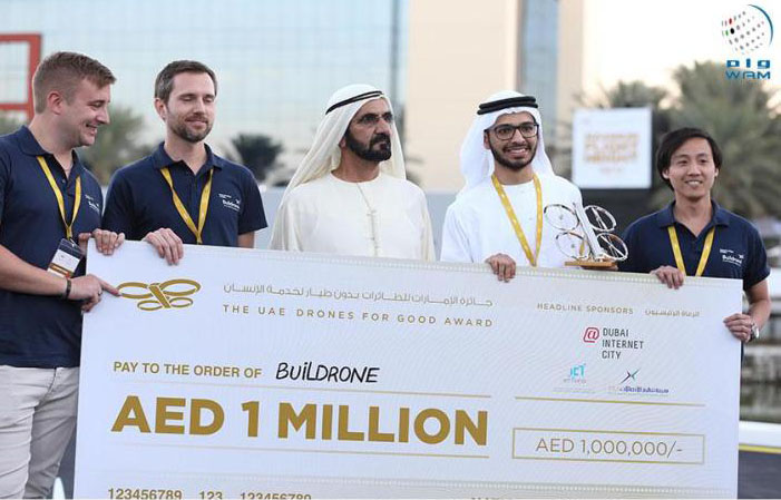 DUBAI, 7th February 2016 (WAM) --- His Highness Sheikh Mohammed bin Rashid Al Maktoum, Vice President and Prime Minister of the UAE and Ruler of Dubai, yesterday honoured the winners of the second UAE Drones for Good Award and the first UAE AI & Robotics Award for Good, the world’s biggest awards in civilian applications of drones and robotics technology, in the presence of top dignitaries and international experts at the conclusion of a three-day competition event at Dubai Internet City.