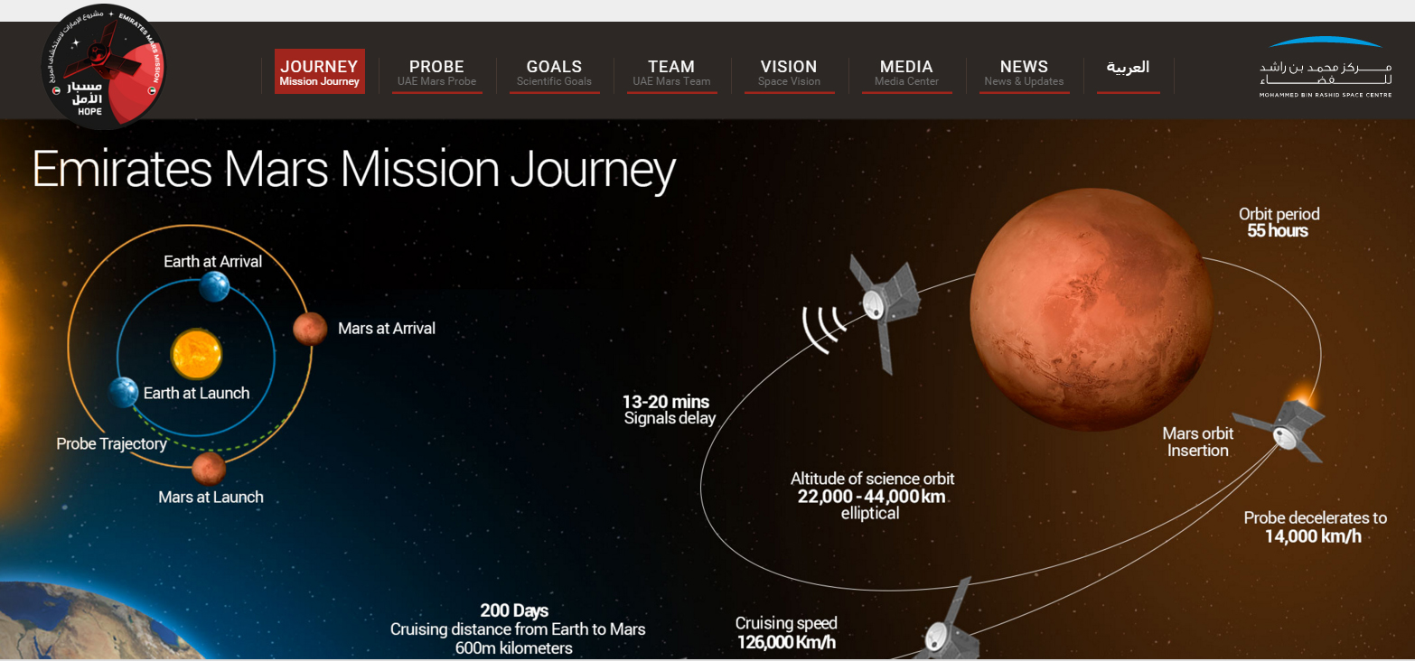 "After only fifty years, in 2021, the two marches will meet at a point 60 million kilometres away from us, where Emirati nationals will add to the march of human knowledge a new impetus with an Arab imprint."