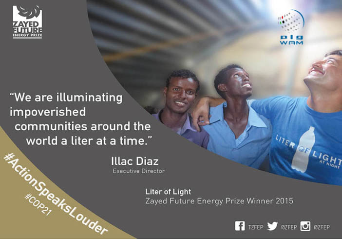 ABU DHABI, 18th November, 2015 (WAM) -- The Zayed Future Energy Prize, the UAE’s international prize for energy and sustainability pioneers, recently launched its #ActionSpeaksLouder campaign.