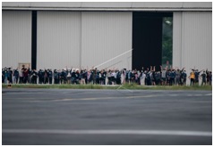 Indonesian nationals evacuated from Wuhan, Hubei, China, waved out to the press as they partook in an exercise with some military personnel on the 13th day of observation in the Raden Sadjat Air Base Hangar of the Indonesian Air Force in Natuna, Riau Islands, Friday (14/2/2020). (ANTARA FOTO/Muhammad Adimaja/foc/ac)