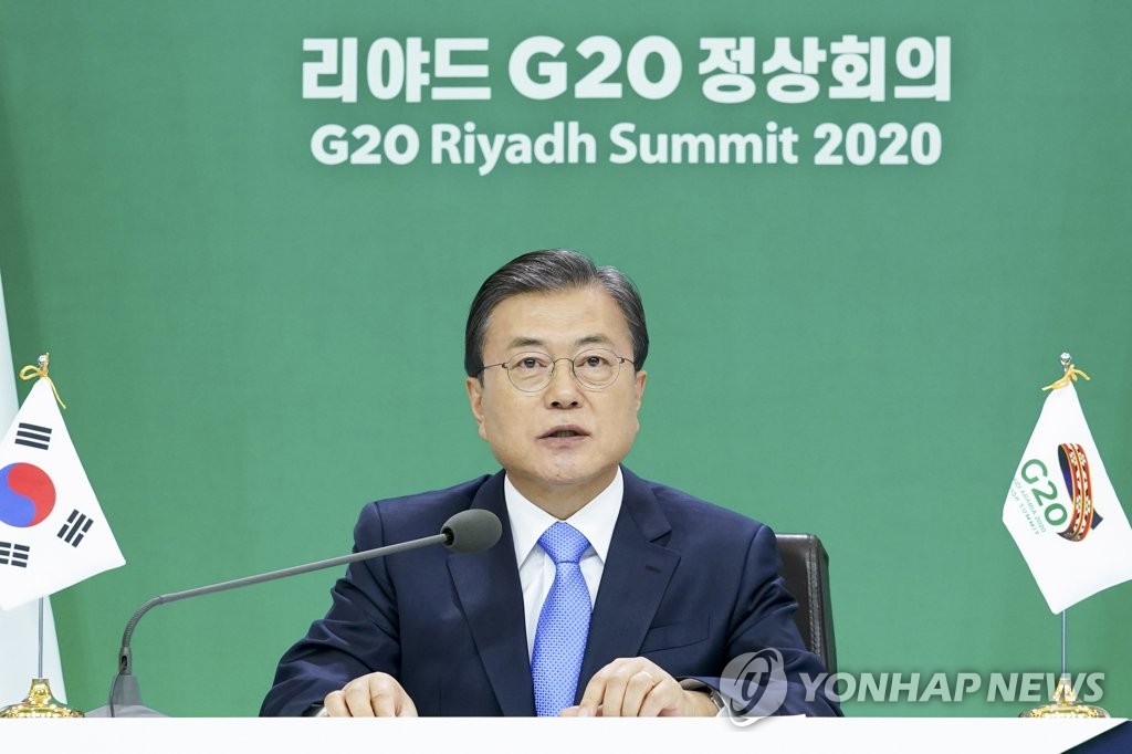 Photo South Korean President Moon Jae-in speaks during a virtual summit of the Group of 20 leaders, chaired by Saudi Arabia, at Cheong Wa Dae in Seoul on Nov. 21, 2020. (Yonhap) (END) Log in to post comments