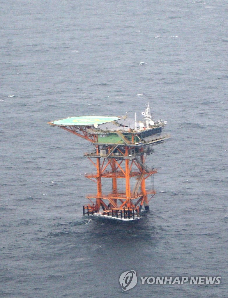 This aerial photo, taken from the Challenger patrol plane of the Korean Coast Guard on Aug. 12, 2020, shows Ieo Islet about 149 kilometers southwest of South Korea's southernmost island of Mara. Since 2003, South Korea has run an ocean research station on the reef islet, lying 4.6 meters below sea level. (Yonhap)