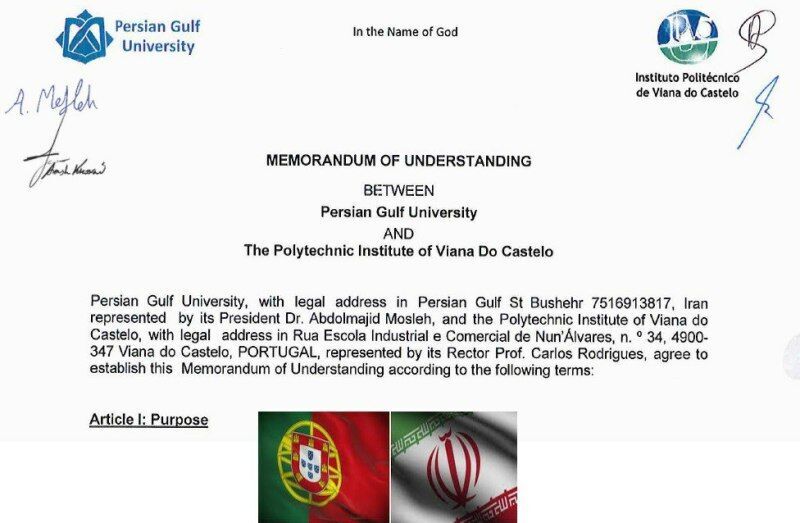 Bushehr, July 28, IRNA – Persian Gulf University of Iran and Portuguese university of Viana Do Castelo signed MoU for launching joint post-doctoral studies aiming to develop international cooperation, Managing Director of Persian Gulf University for international affairs said on Tuesday. Arash Khosravi said that the Persian Gulf University and the European Union held talks with Polytechnic Institute of Viana Do Castelo for developing international cooperation. The MoU was signed by chancellor of Persian Gulf University Abdol Majid Mosleh and president of Polytechnic Institute of Viana do Castelo, Carlos Rodrigues, he noted. The MoU includes cooperation in research, higher education and holding scientific events and training courses and exchanging scientific information. The MoU became operational by holding joint scientific speeches on internet of things (IoT) and mobile apps in smart cities, he added. The academic Cooperation will start by studying smart cities, he said. Persian Gulf University is a university in Bushehr Province of Iran. Established in 1991 as Bushehr University, the university has seven faculties, offering 24 bachelor's degrees, and 33 master's degrees and three PhD degrees.