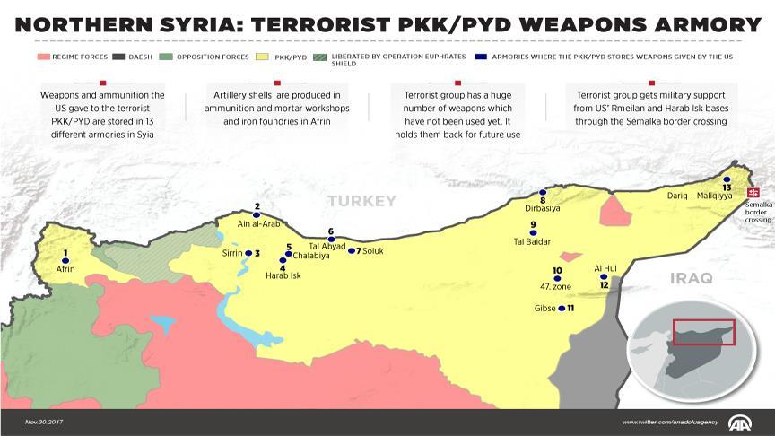 Anadolu Agency reporters have identified armories and shipping routes established by terrorist organization in northern Syria, with information they retrieved from reliable local sources in the PKK/PYD-occupied territories and open sources.